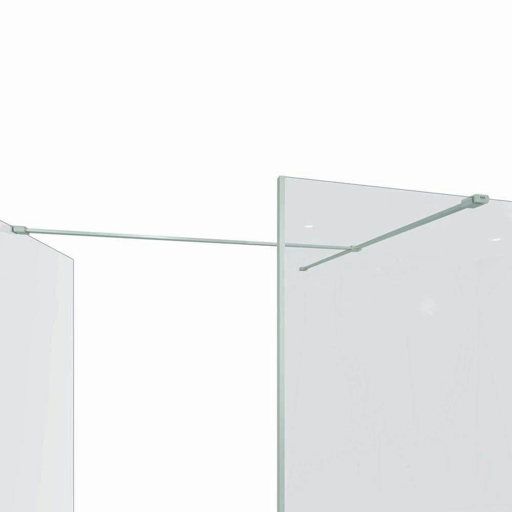 Die niedrige Duschtasse bietet Ihnen einen einfachen Zugang und die Duschwände überzeugen mit einem modernen rahmenlosen Design, welches von zwei Stützarmen in Matt-Cappuccino abgerundet wird. Die Walk-In Duschwände sind 2000mm hoch und bestehen aus 8 mm starkem verstärktem Sicherheitsglas.