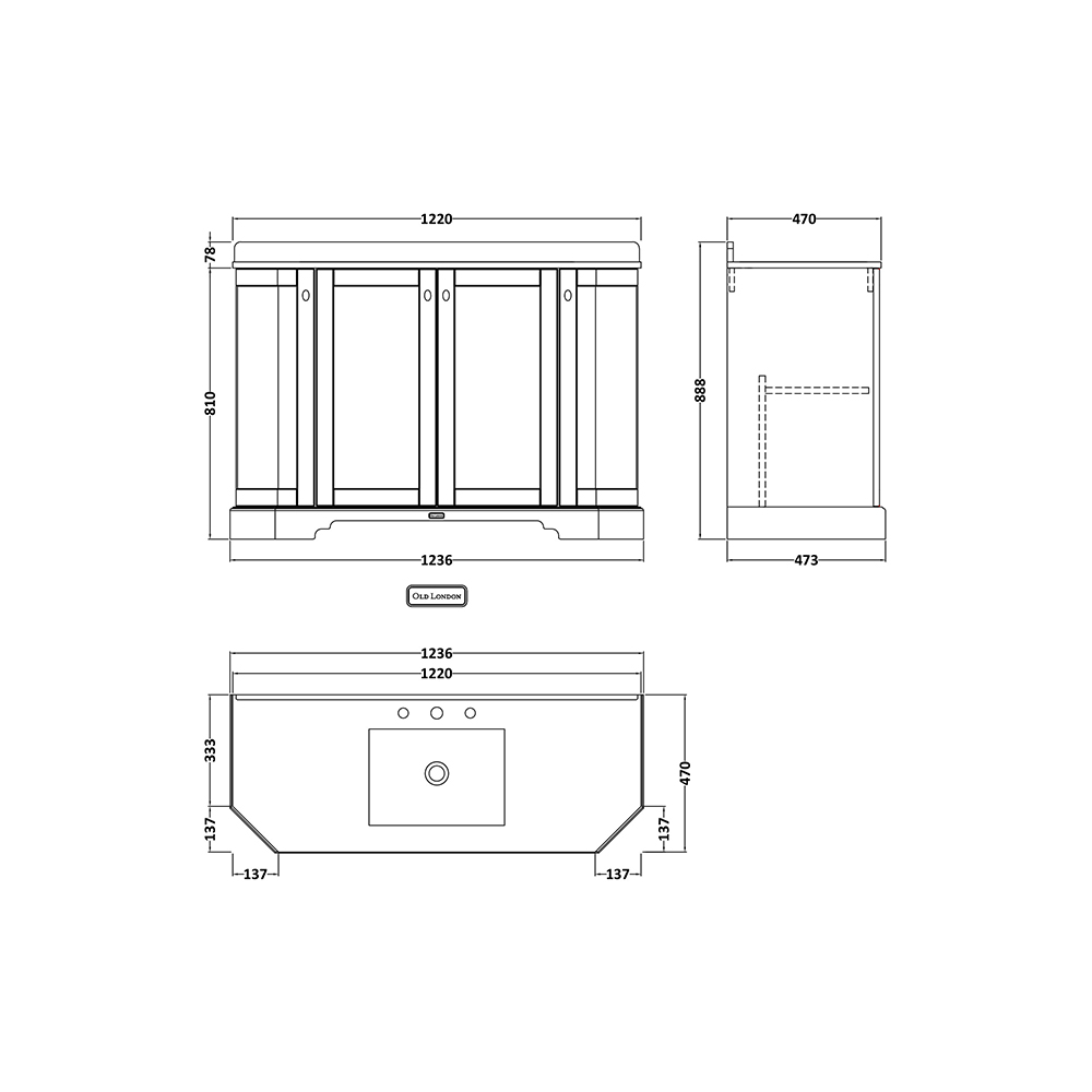 Kombinieren Sie diesen Unterschrank mit einem passenden Old London-Spiegelschrank und einer unserer traditionellen Waschtischarmaturen und kreieren ein elegantes Badezimmer im klassischen Stil.